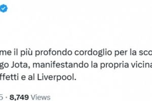尤文官方也发文为若塔表示悼念,写道:“尤文图斯对若塔的突然离世表示深切哀悼,并向他的家人、亲友以及利物浦俱乐部致以诚挚慰问。”