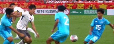 第14分钟,向余望尝试打远角,皮球打偏